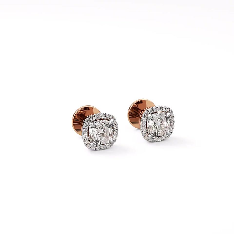 Alina Square Cushion & Round Halo Diamond Stud Earrings