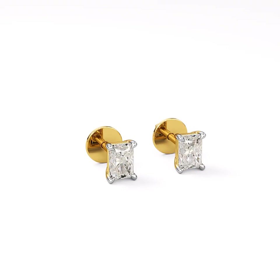 Radiant-cut diamonds meet classic charm in these stunning solitaire stud earrings. Set in yellow gold, each piece reflects grace and individuality. A perfect choice for women who adore refined beauty with a modern twist. A treasure to pass down, a joy to wear.